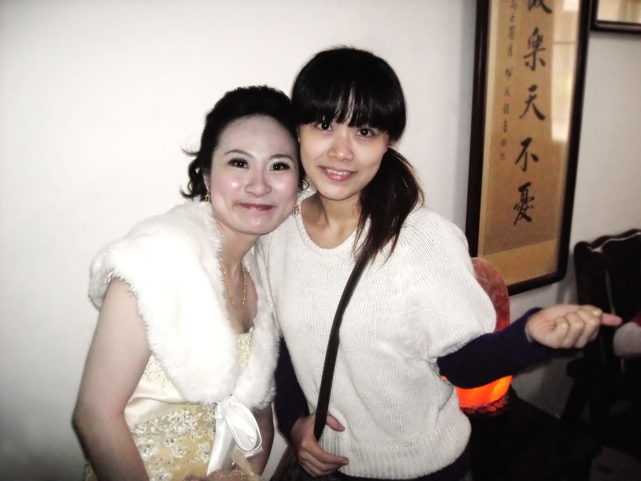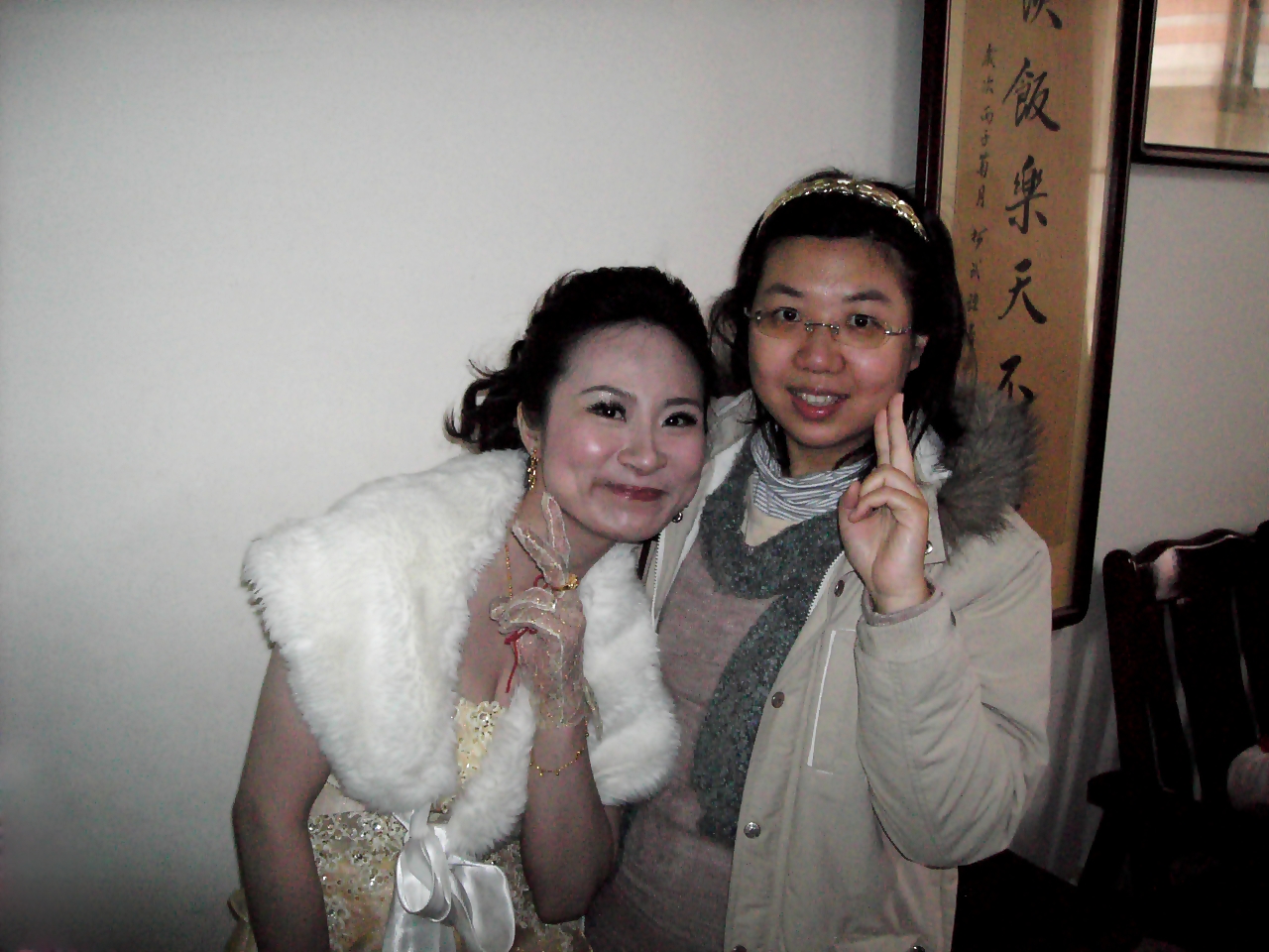 我和另一個好朋友與新娘新郎他們一邊拍照,也一邊聊著天...我們也吃著阿姨招待的湯圓,然後看看喜餅,我們拿的喜餅看來很古錐~還附上喜帖與留念的婚紗照(喜帖這邊也很費工---有黏照片和手寫宴客的一些資訊)朋友的阿姨也分享好友的兒時照片給大家看(所以結婚好像都要拿小時候的照片來看的~是嗎?!)新郎和男方的親友後來較早離開要先去餐廳那裏準備,而我們則是在大約11:30左右出發(給朋友的爸爸載我們~)